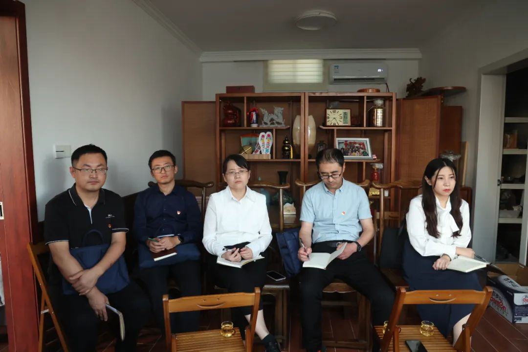 以李長勝(左二)為組長的山東省委主題教育第十二巡回督導組來九間棚村調研。