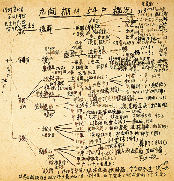 李錦在九間棚調研時畫出的家族關系圖引起李長勝組長的興趣。通過這張圖表了解九間棚典型的蹲點調查情況。