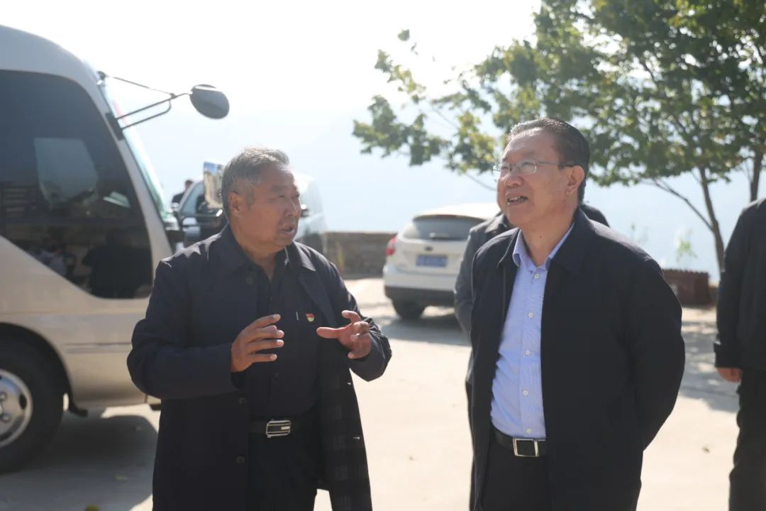 山東省委主題教育第十二巡回督導組組長李長勝與九間棚村支書劉嘉坤在一起。